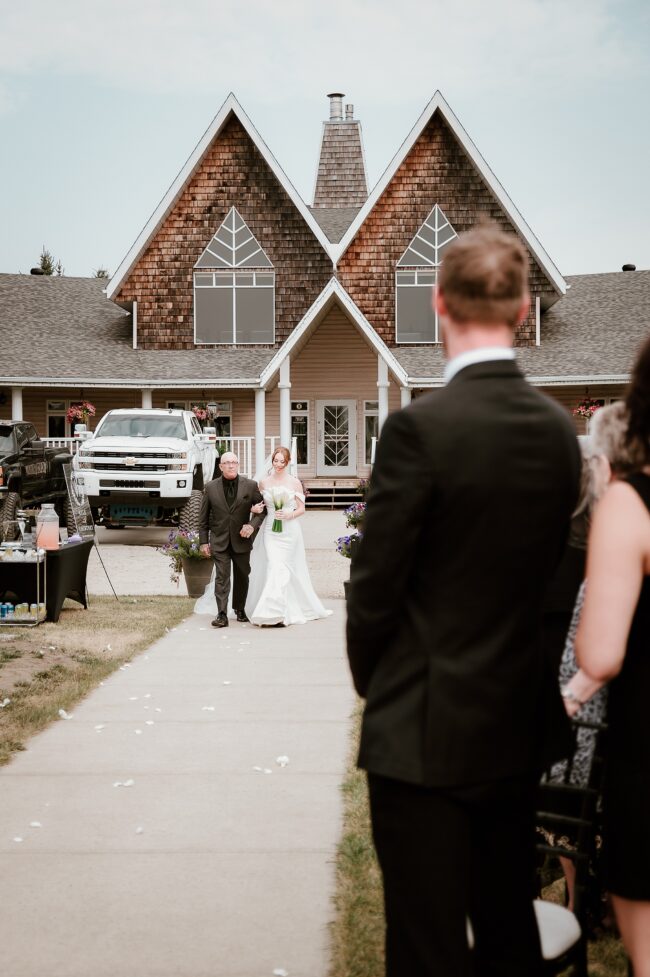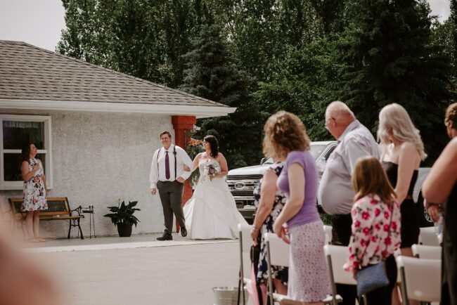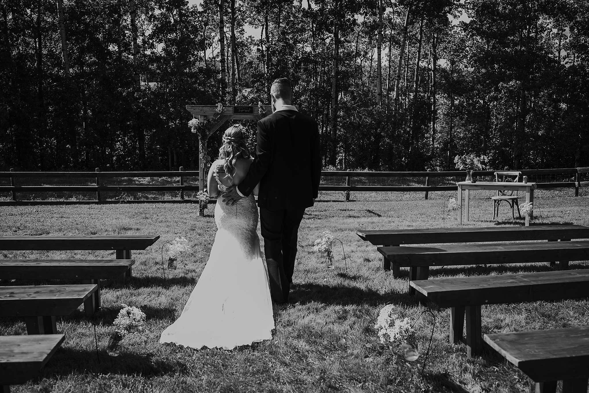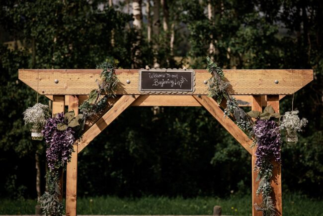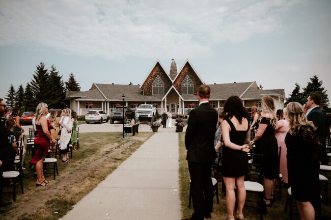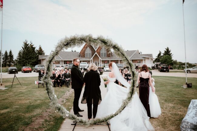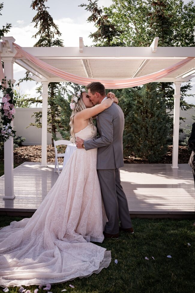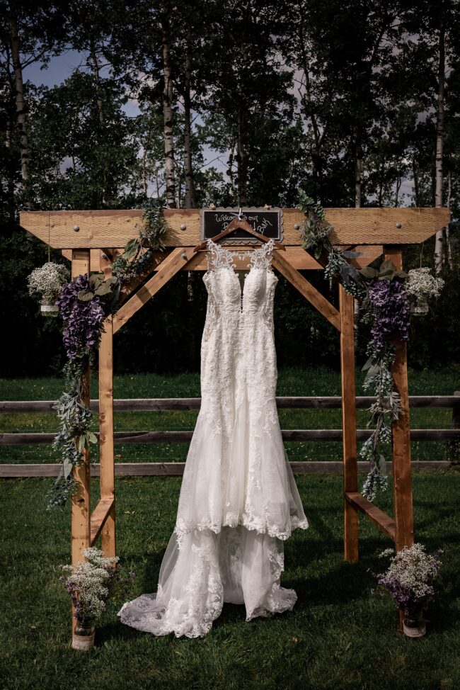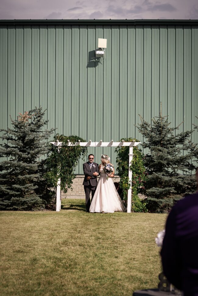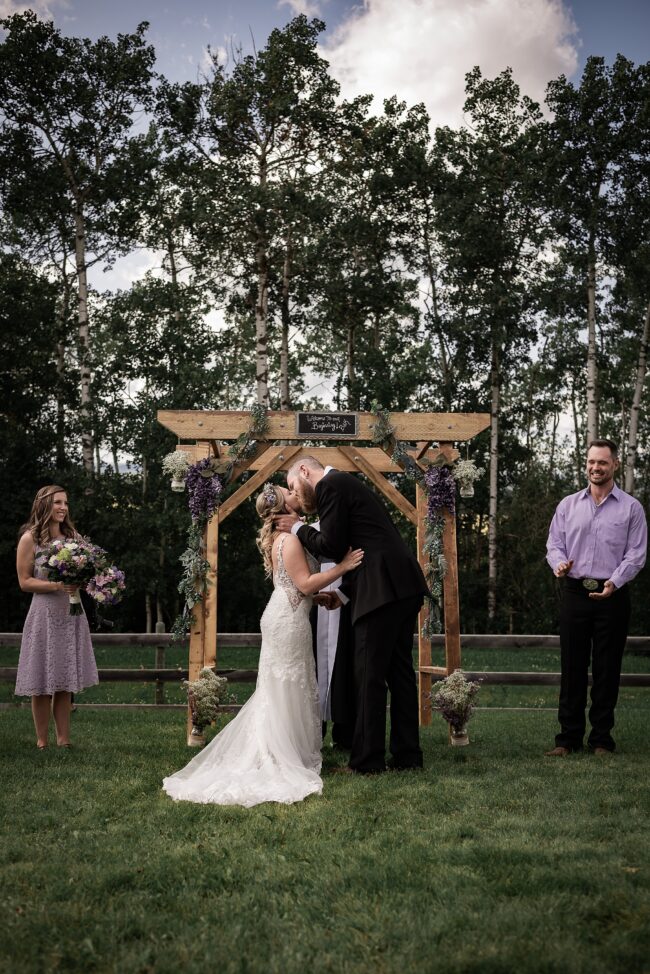 Getting married on your own property is so special, sharing your love with your friends and family in your stunning backyard is the perfect location for a wedding. The amazing arch and wooden benches made it such a beautiful setting to say I do! Heading downtown Lacombe for Portraits and a intimate Dinner celebration at Cilantro & Chive.