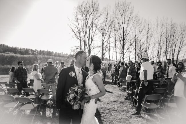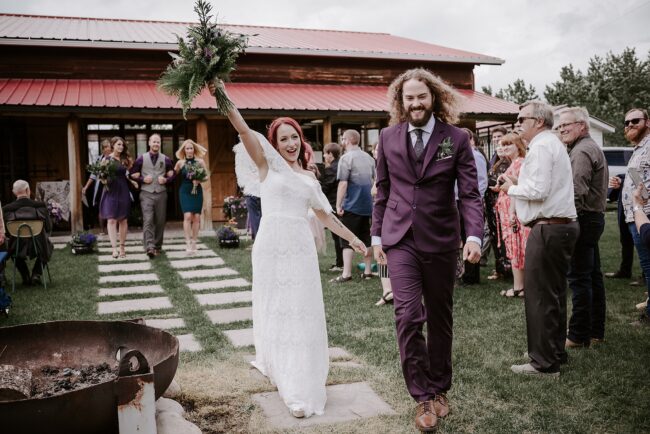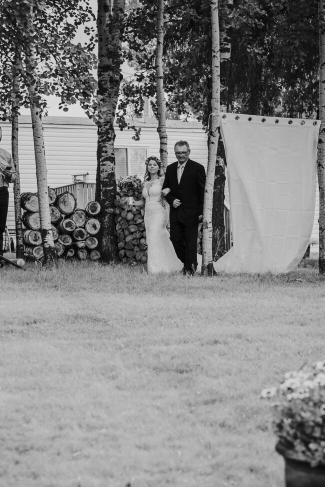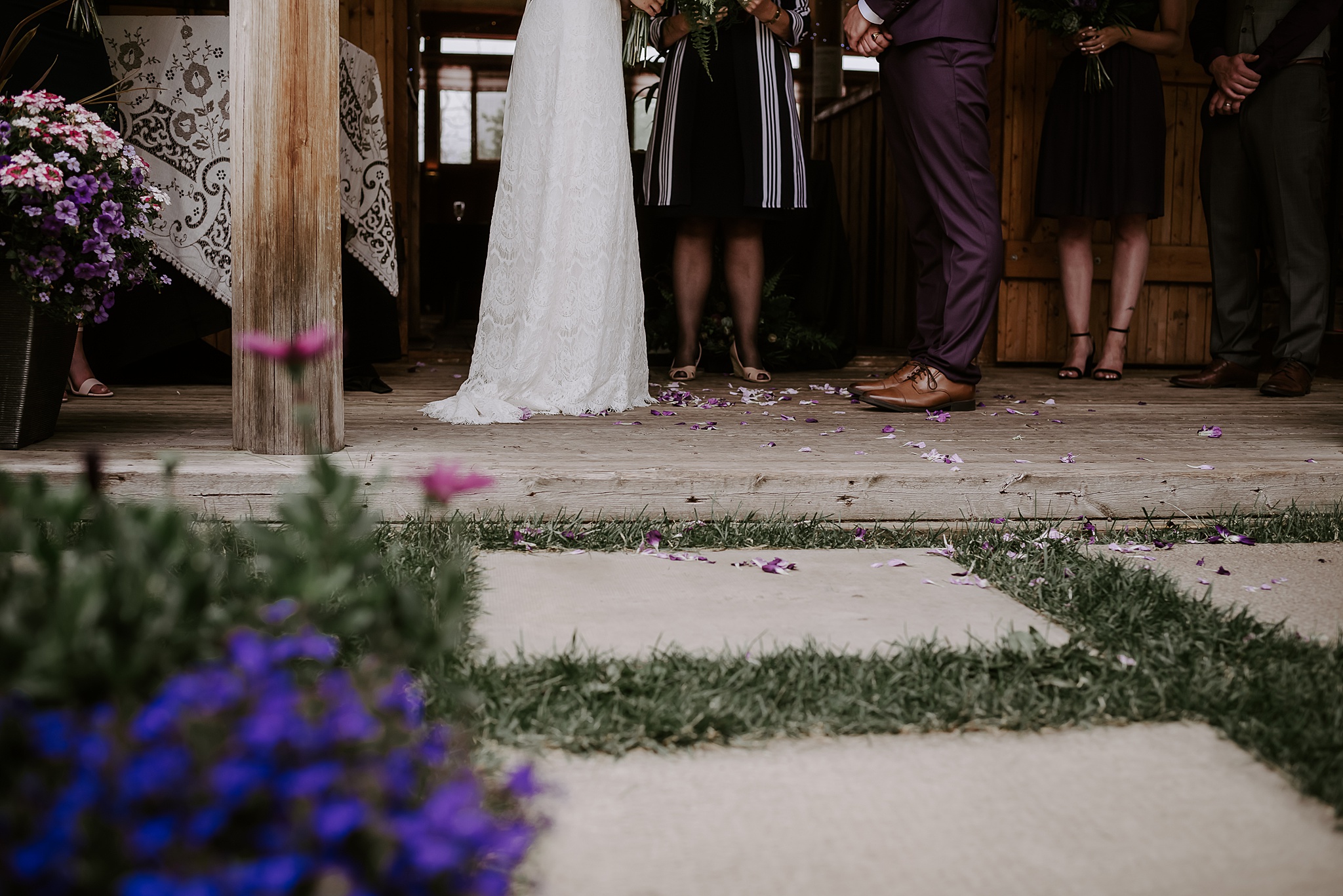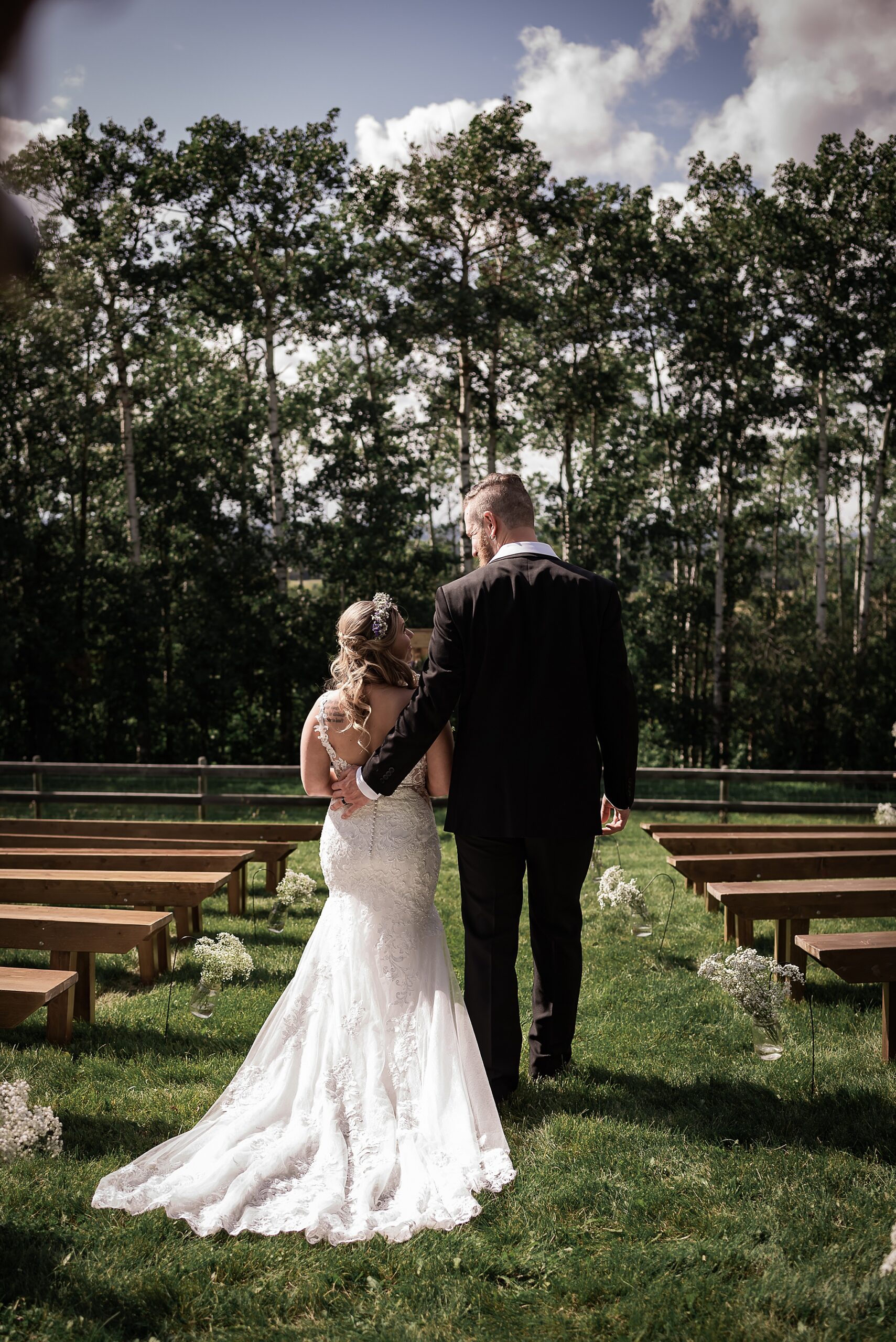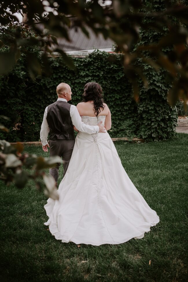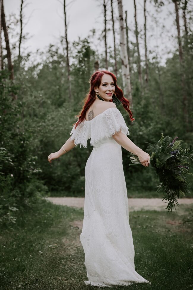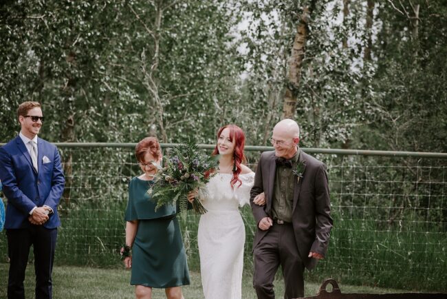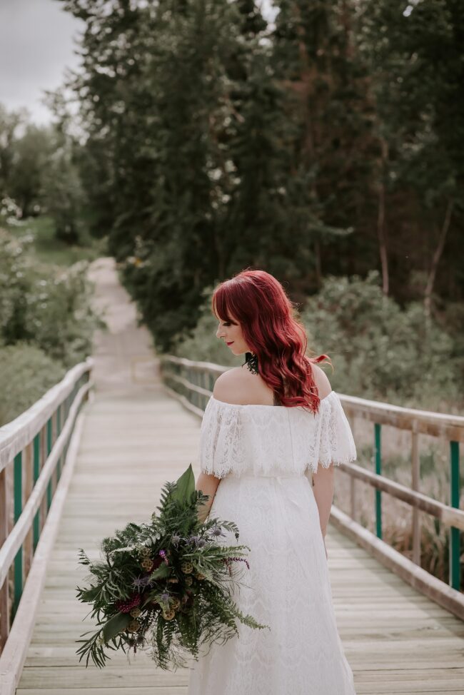 Getting married on your own property is so special, sharing your love with your friends and family in your stunning backyard is the perfect location for a wedding. The amazing arch and wooden benches made it such a beautiful setting to say I do! Heading downtown Lacombe for Portraits and a intimate Dinner celebration at Cilantro & Chive.