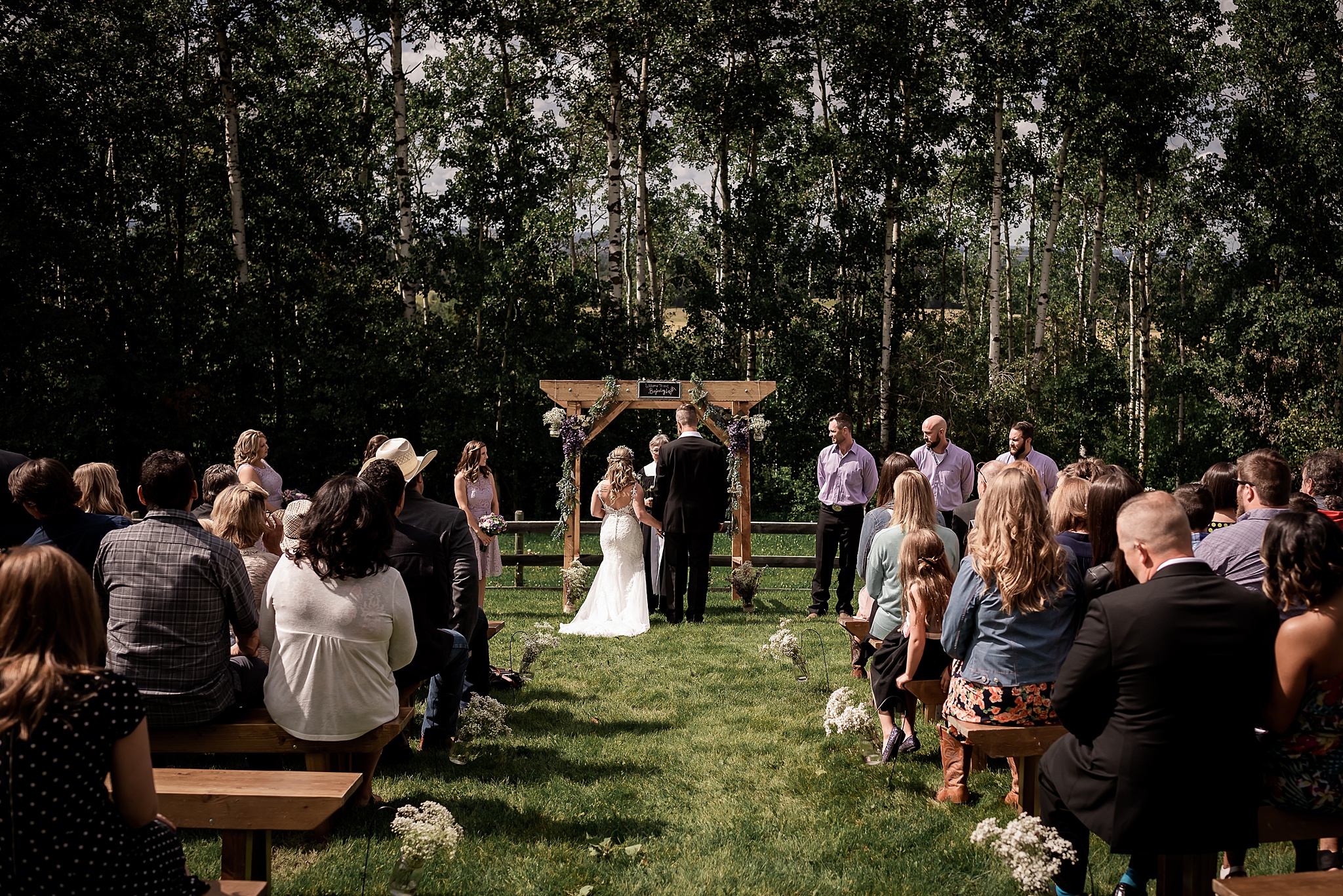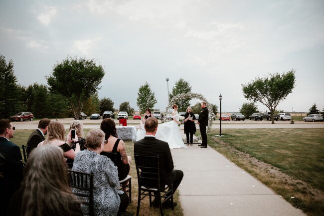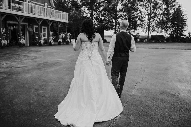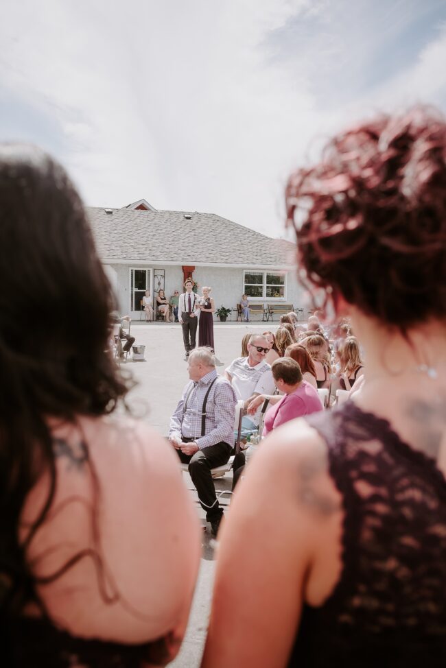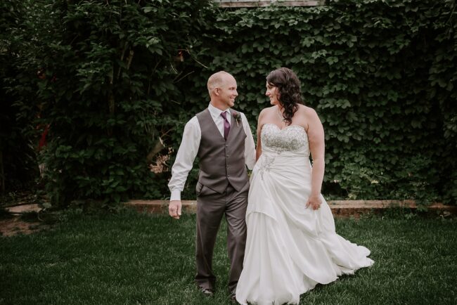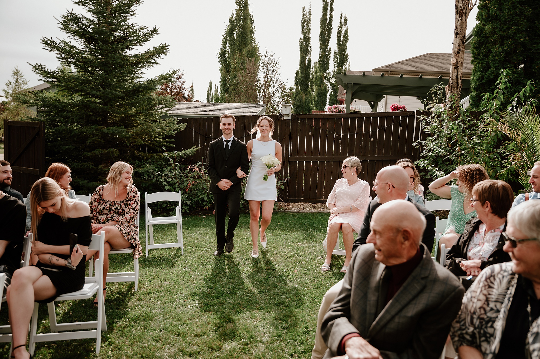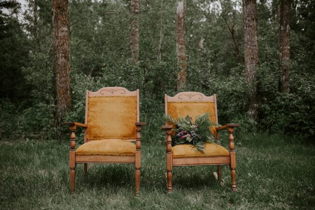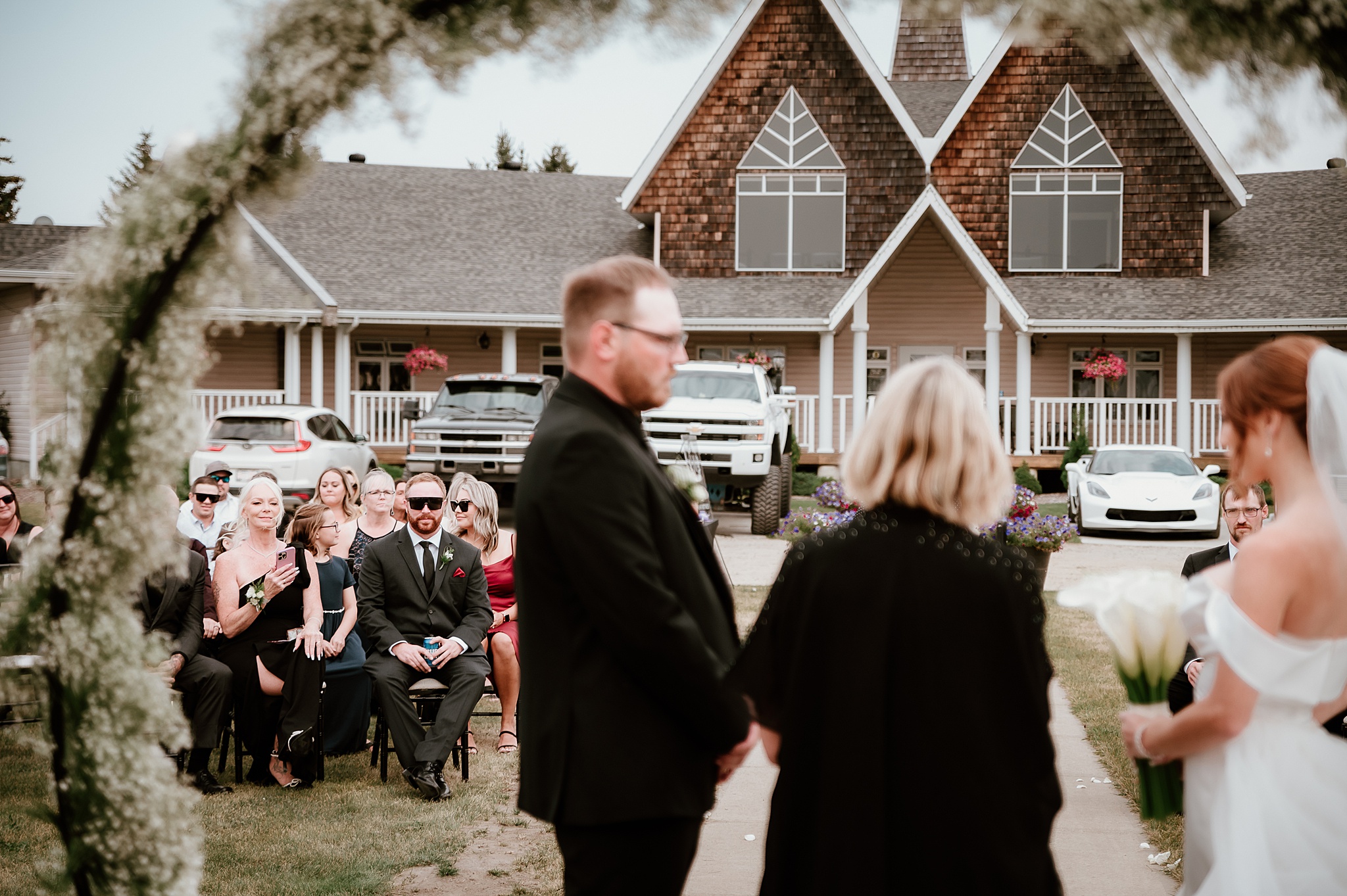 Getting married on your own property is so special, sharing your love with your friends and family in your stunning backyard is the perfect location for a wedding. The amazing arch and wooden benches made it such a beautiful setting to say I do! Heading downtown Lacombe for Portraits and a intimate Dinner celebration at Cilantro & Chive.