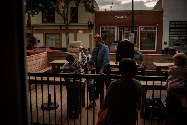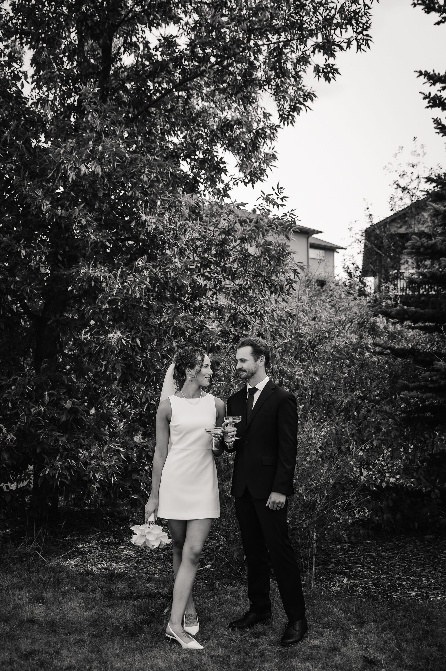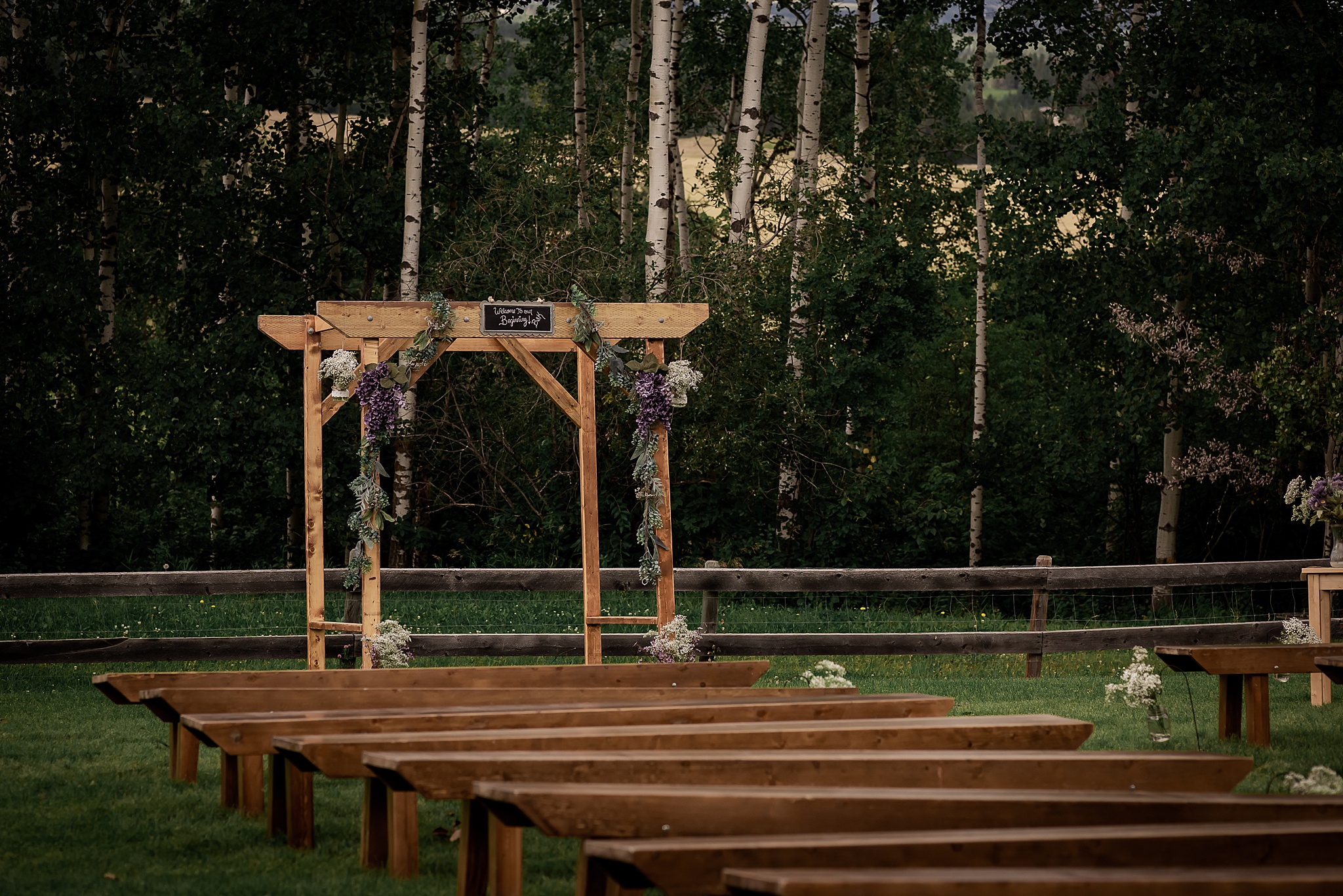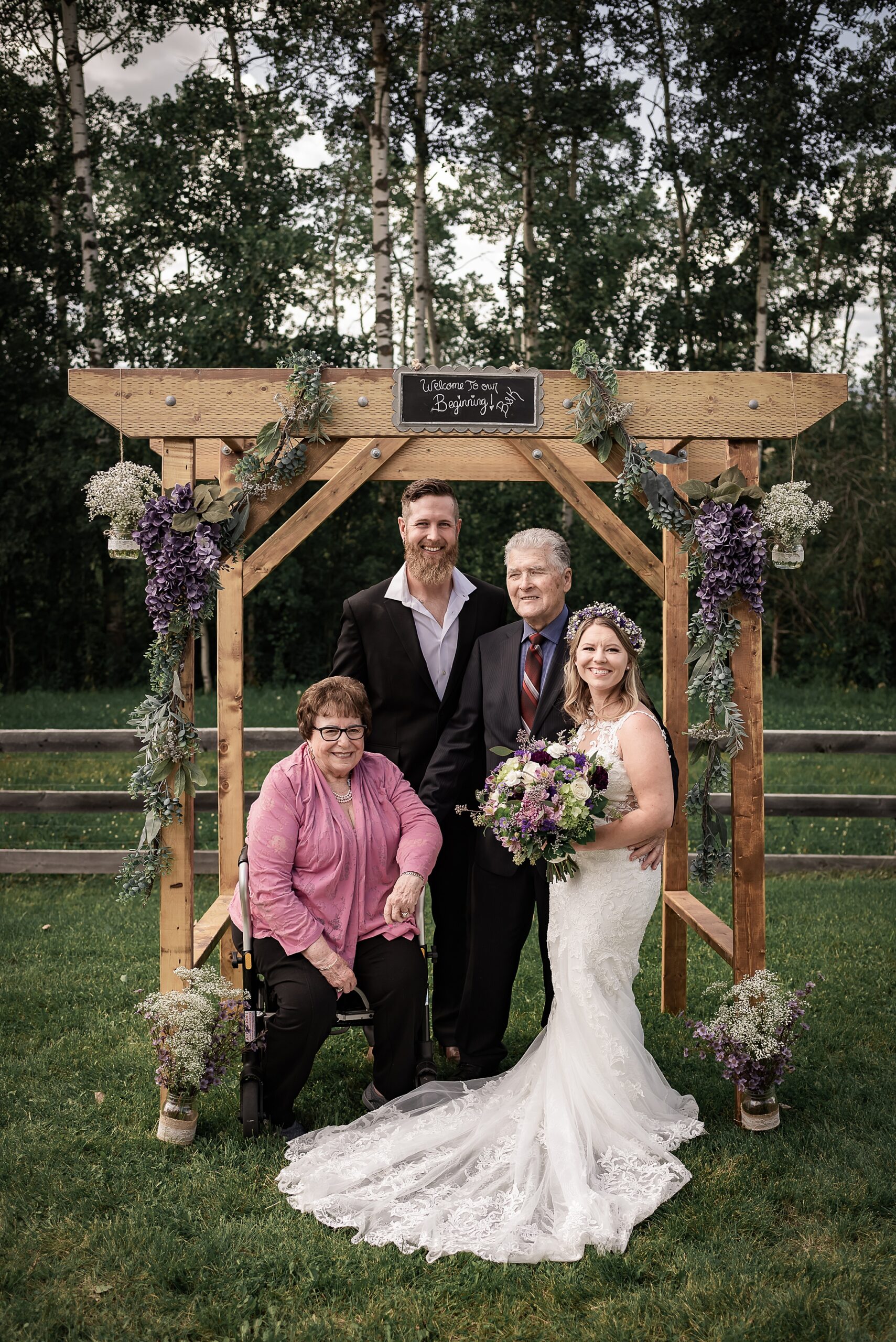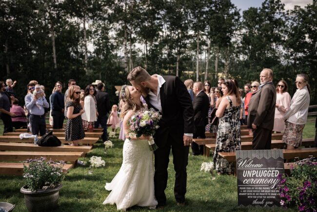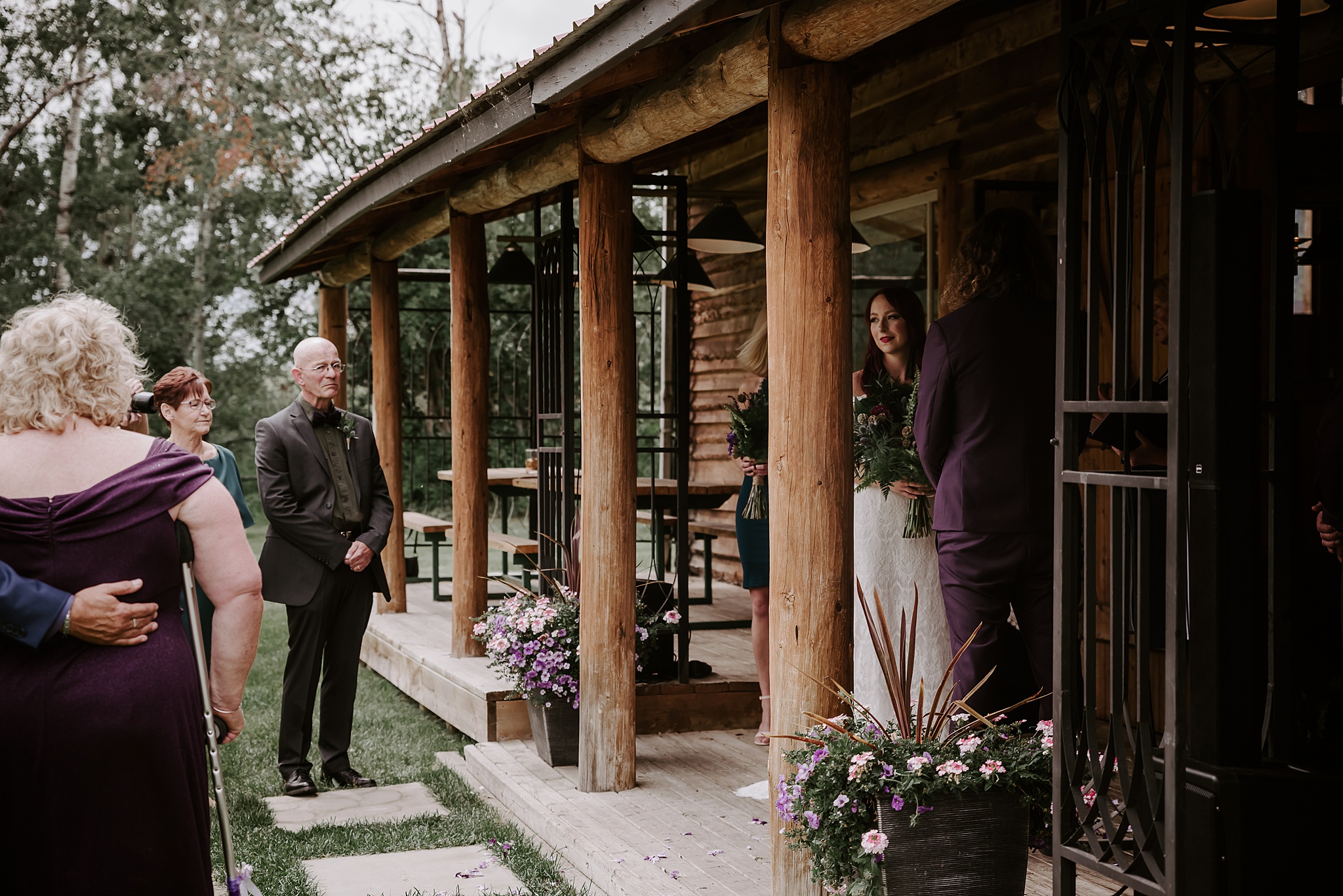 Getting married on your own property is so special, sharing your love with your friends and family in your stunning backyard is the perfect location for a wedding. The amazing arch and wooden benches made it such a beautiful setting to say I do! Heading downtown Lacombe for Portraits and a intimate Dinner celebration at Cilantro & Chive.
