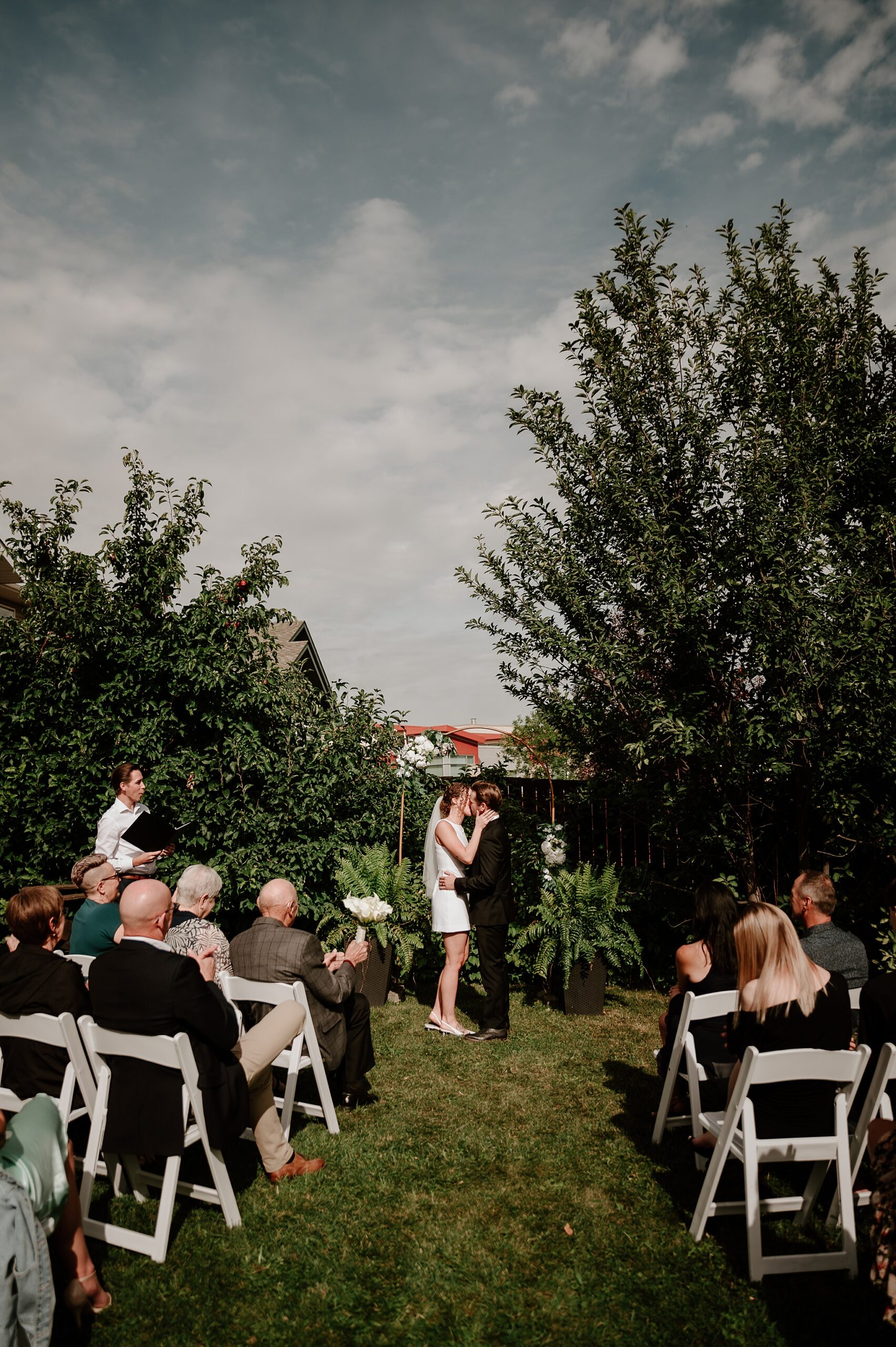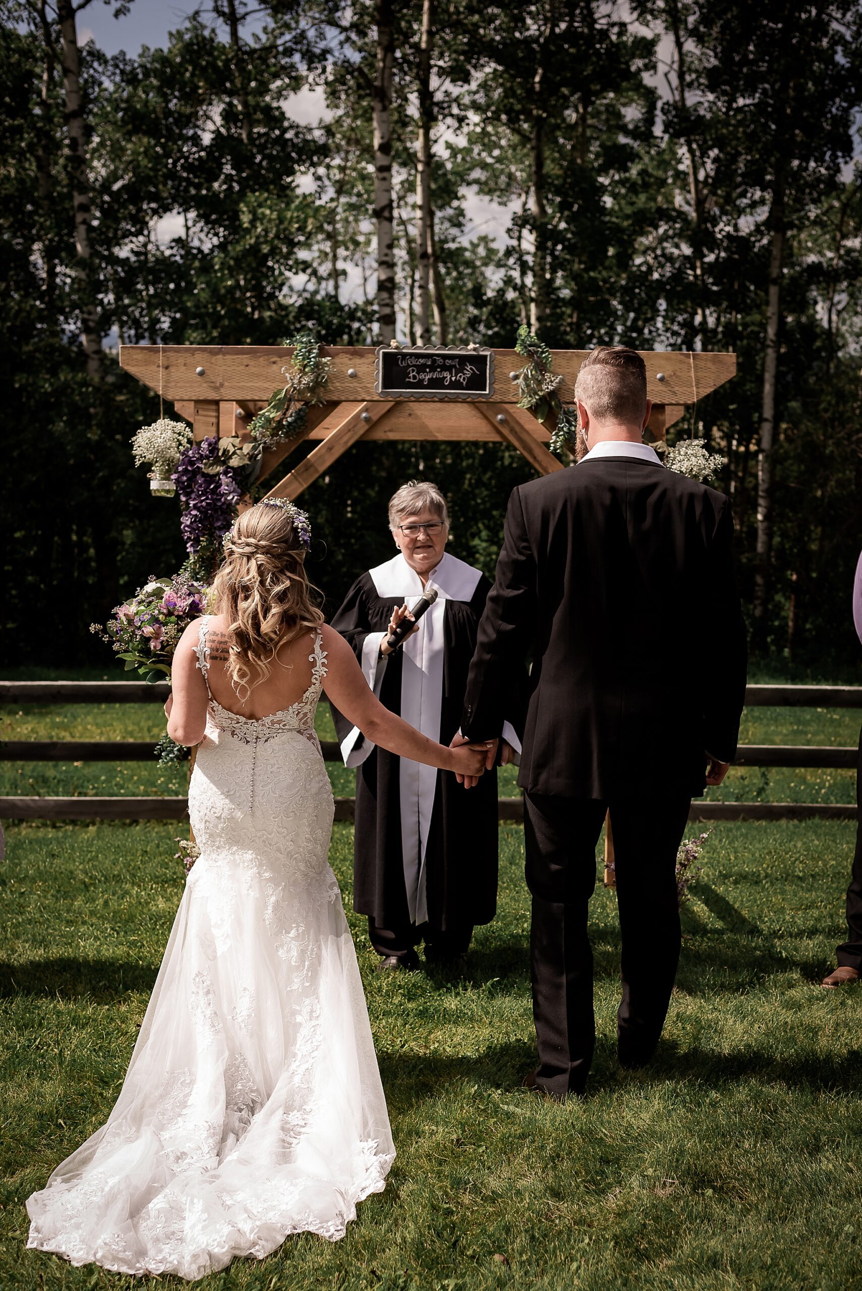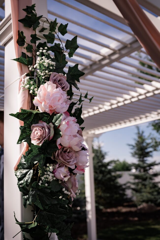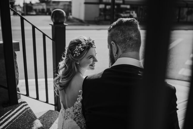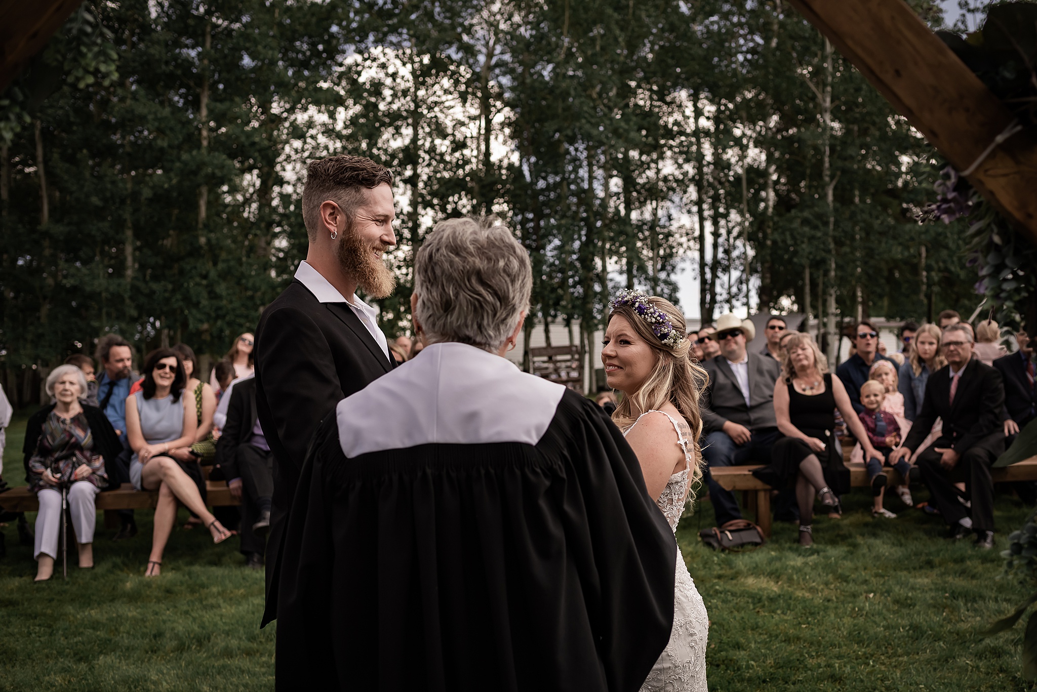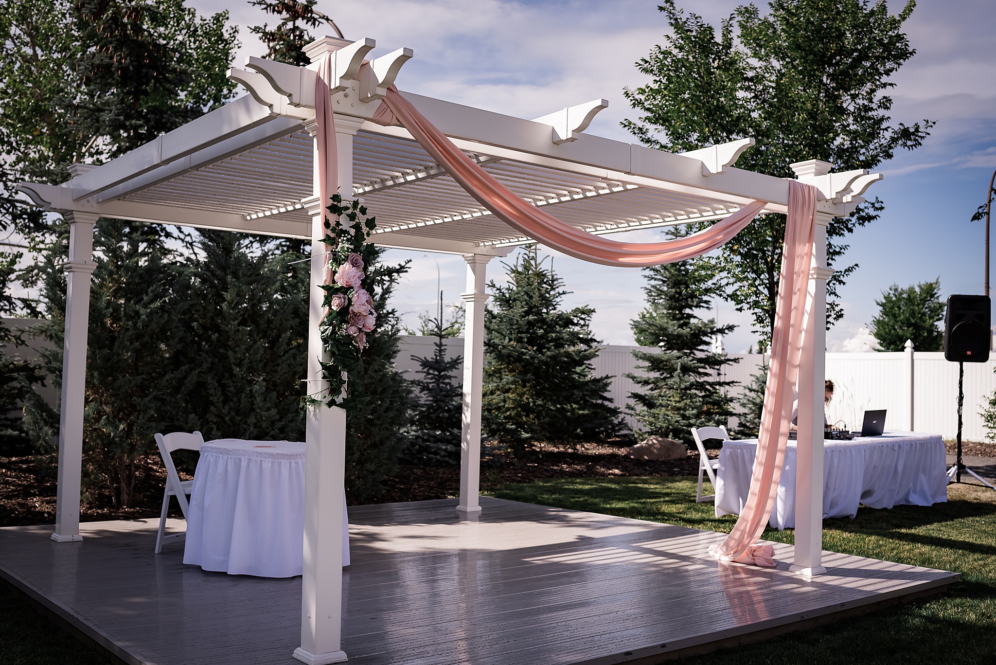 Getting married on your own property is so special, sharing your love with your friends and family in your stunning backyard is the perfect location for a wedding. The amazing arch and wooden benches made it such a beautiful setting to say I do! Heading downtown Lacombe for Portraits and a intimate Dinner celebration at Cilantro & Chive.