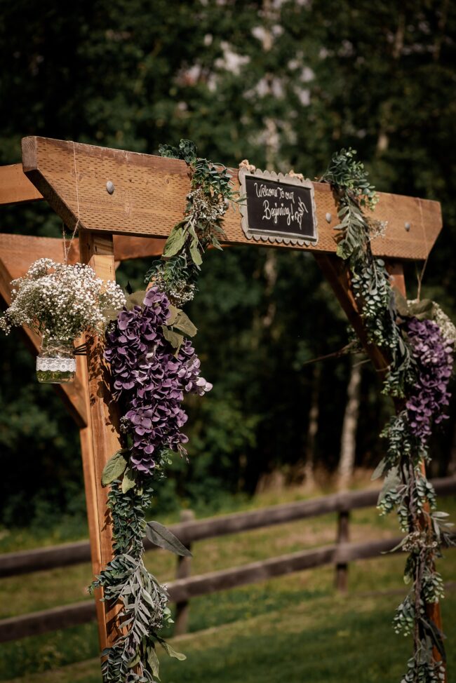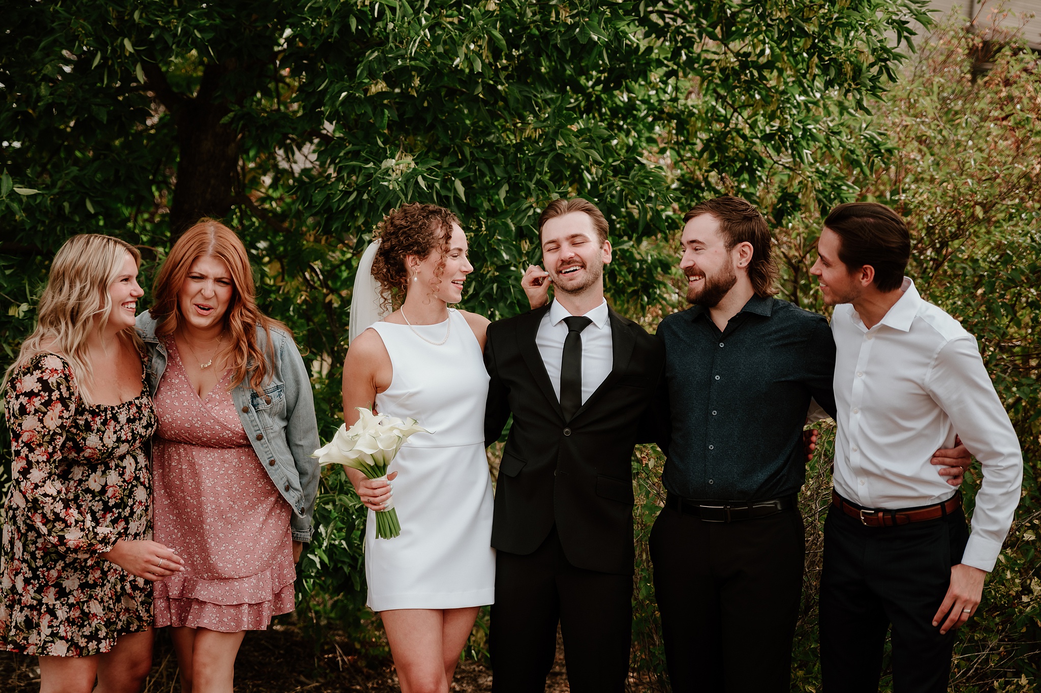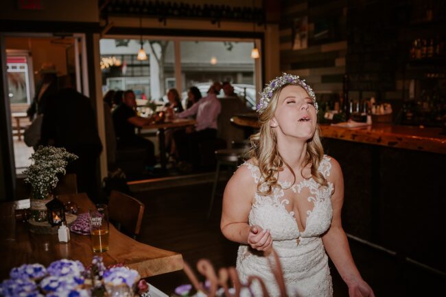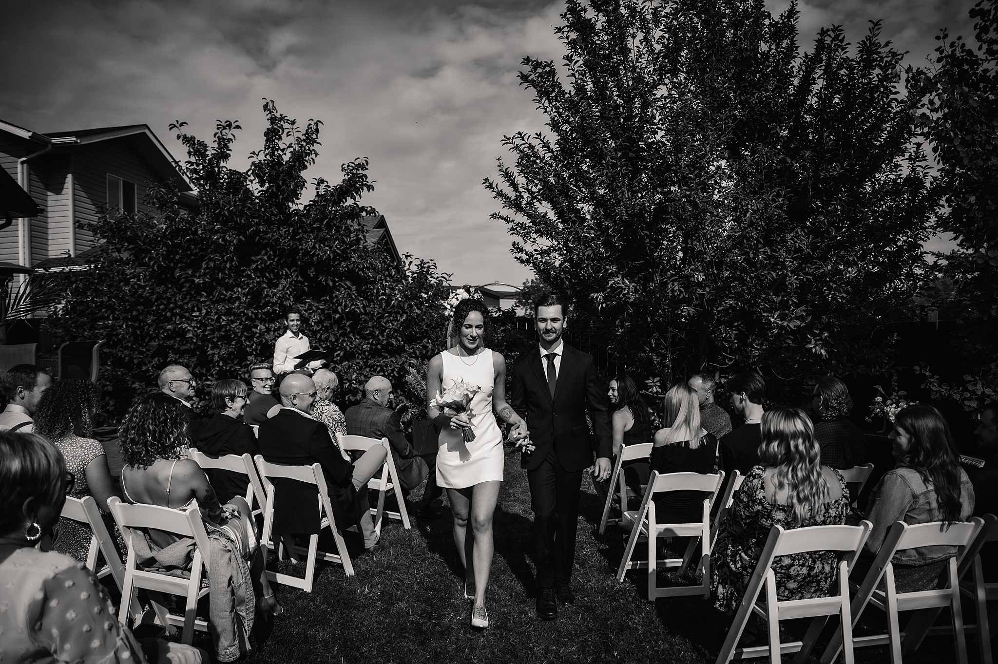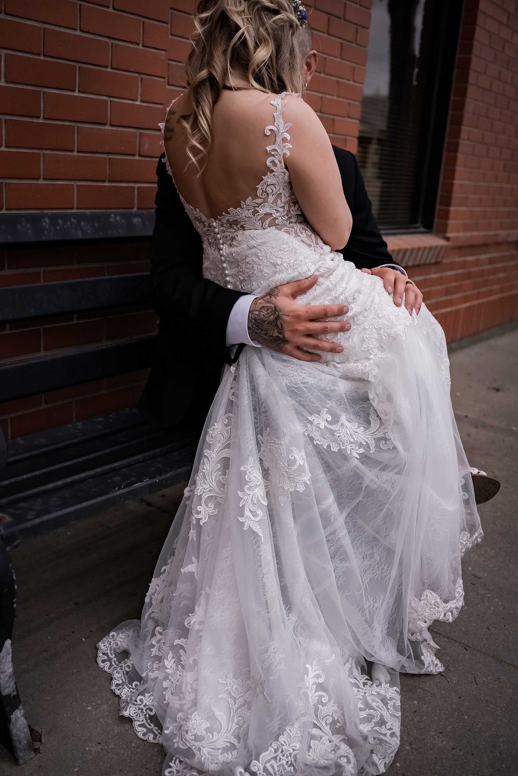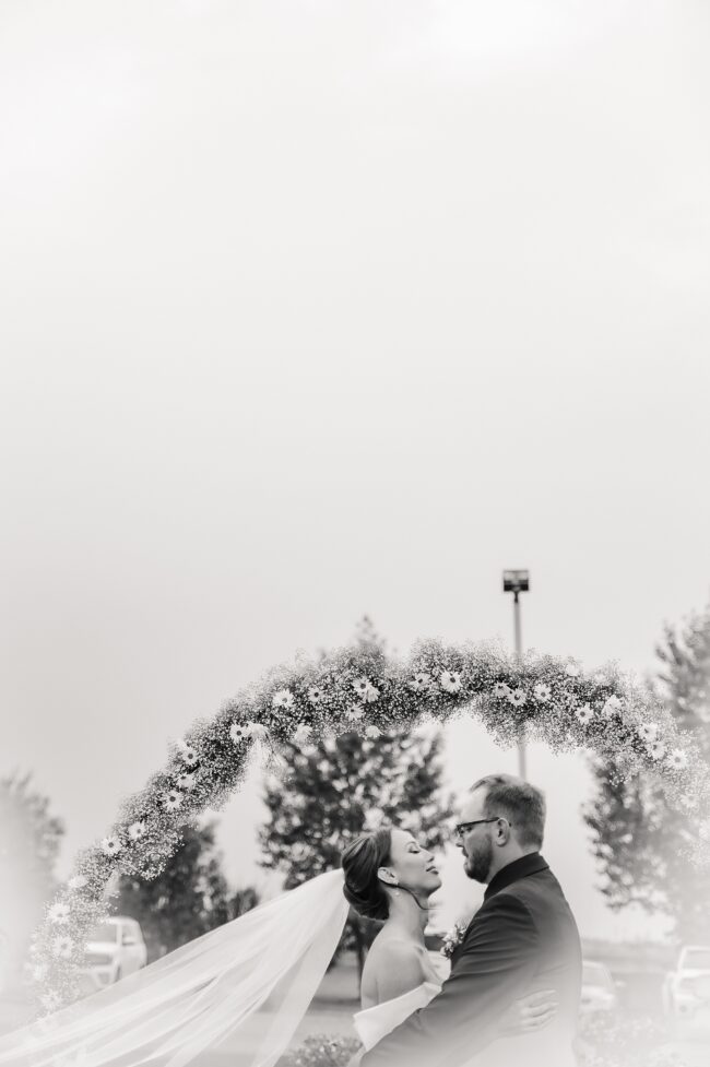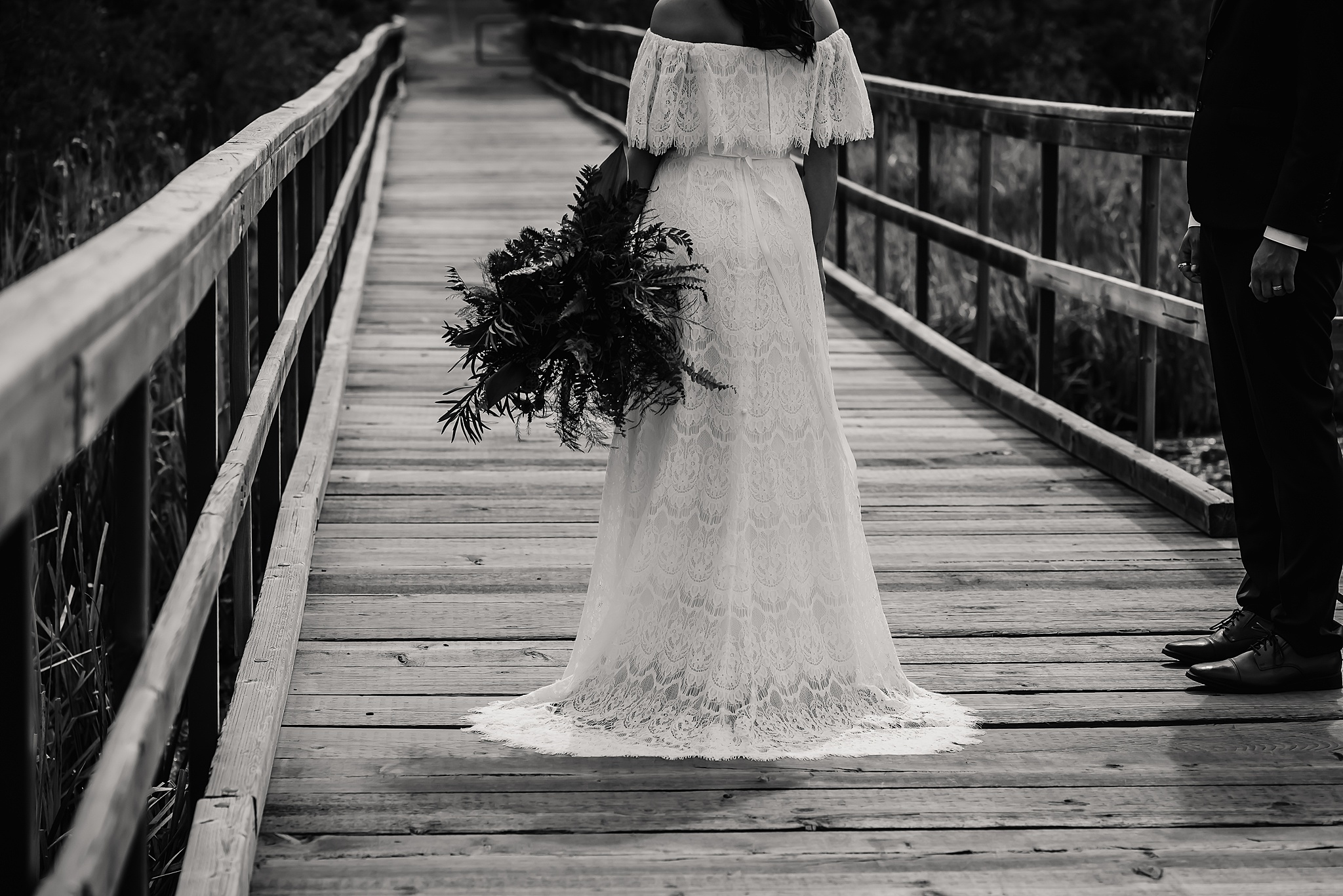 Getting married on your own property is so special, sharing your love with your friends and family in your stunning backyard is the perfect location for a wedding. The amazing arch and wooden benches made it such a beautiful setting to say I do! Heading downtown Lacombe for Portraits and a intimate Dinner celebration at Cilantro & Chive.