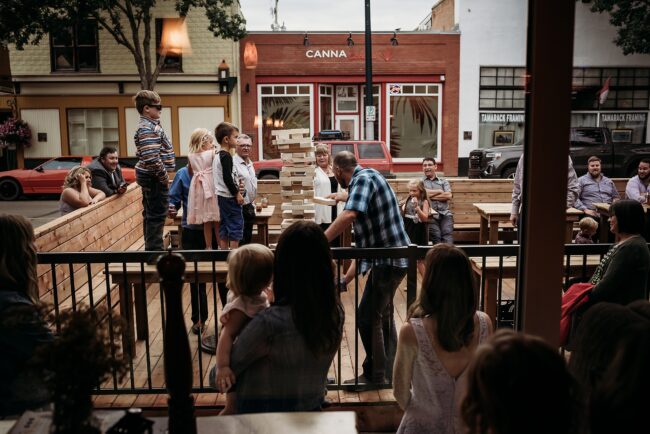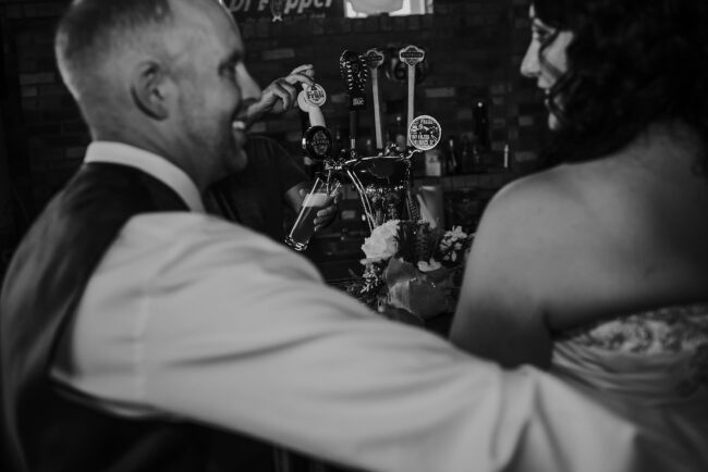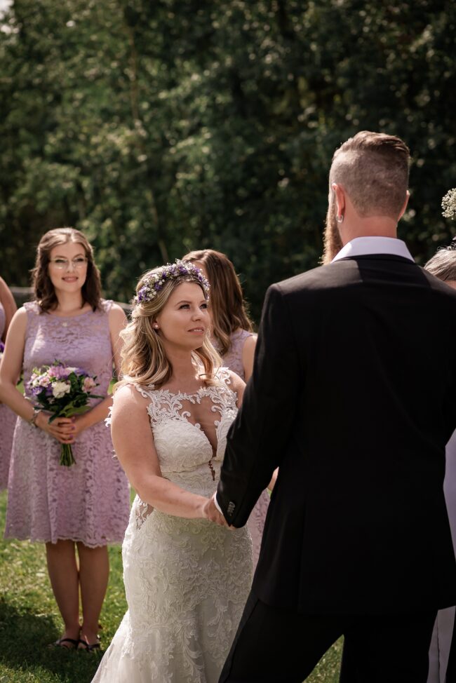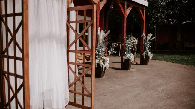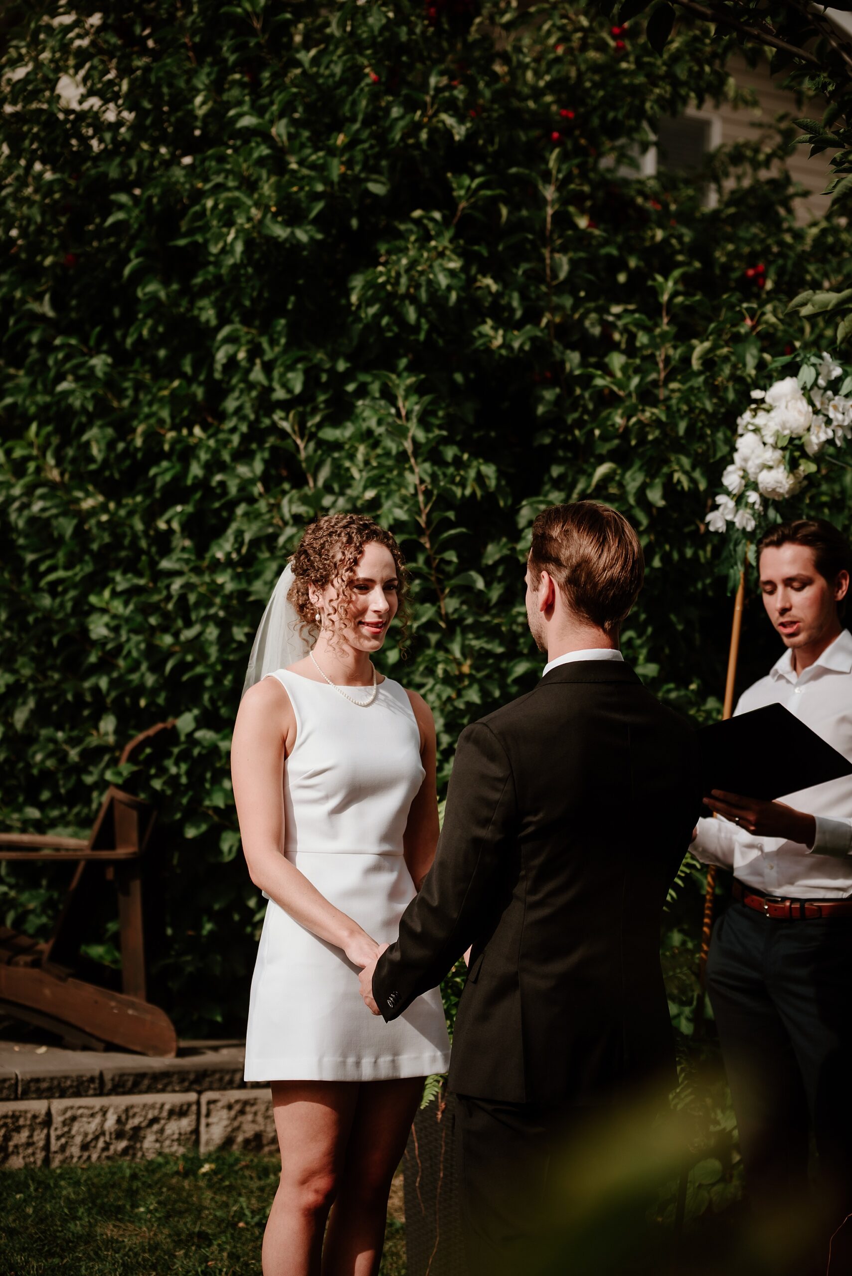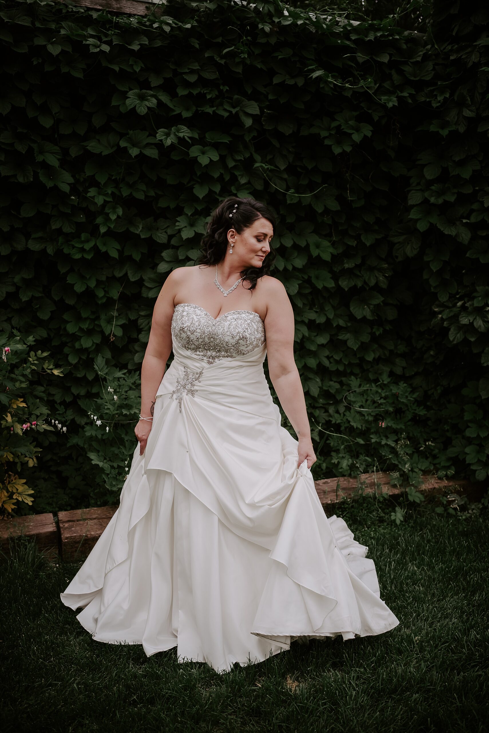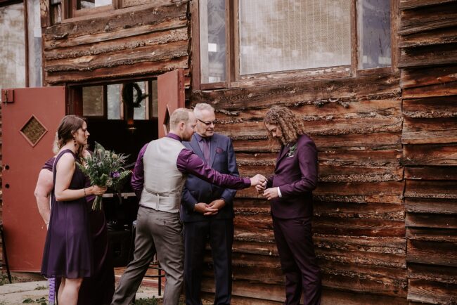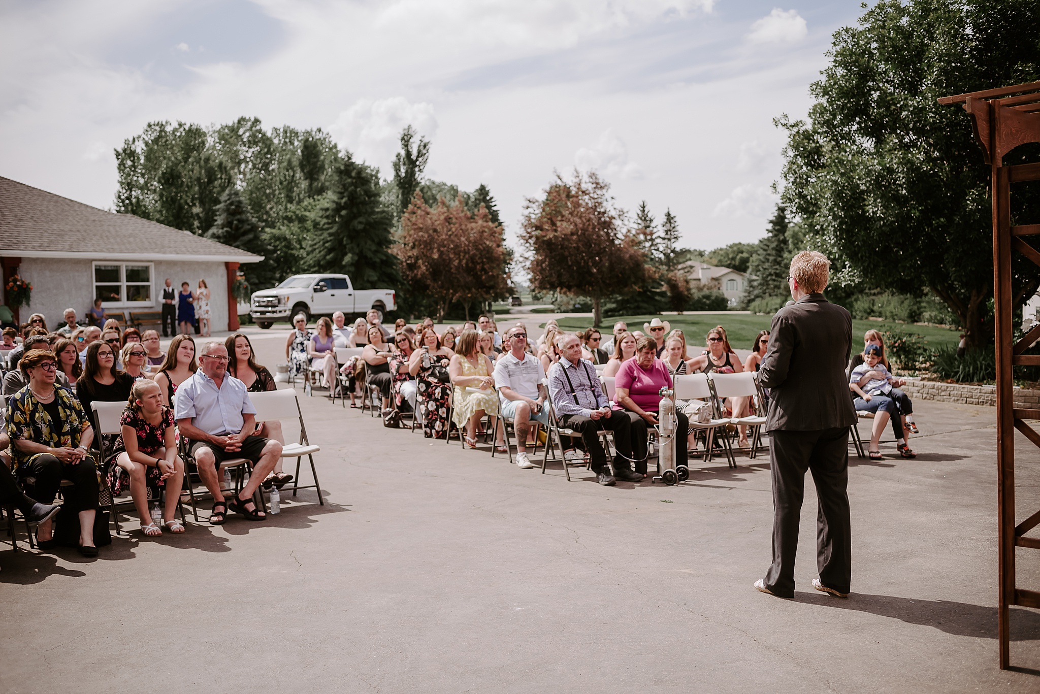 Getting married on your own property is so special, sharing your love with your friends and family in your stunning backyard is the perfect location for a wedding. The amazing arch and wooden benches made it such a beautiful setting to say I do! Heading downtown Lacombe for Portraits and a intimate Dinner celebration at Cilantro & Chive.